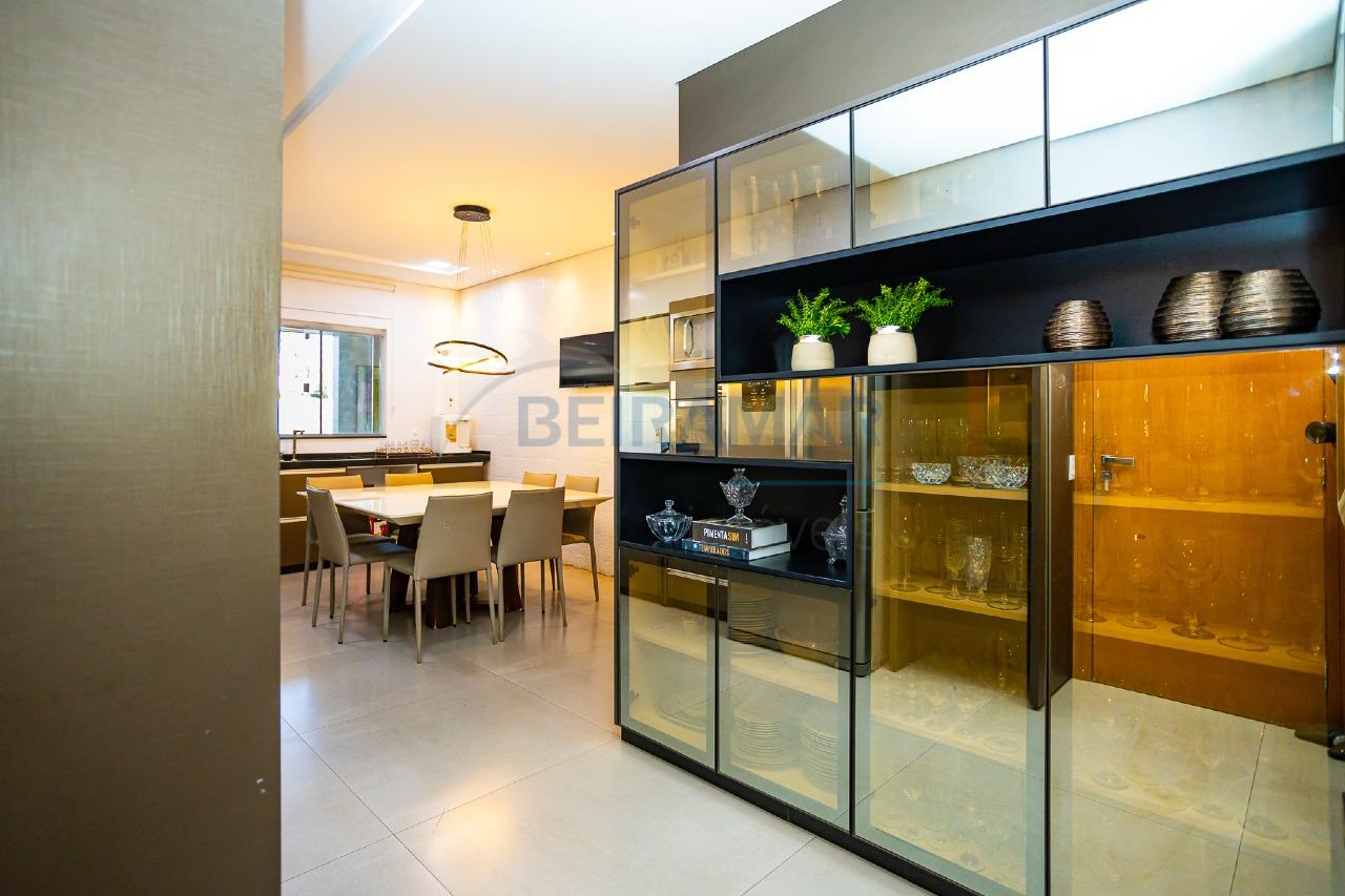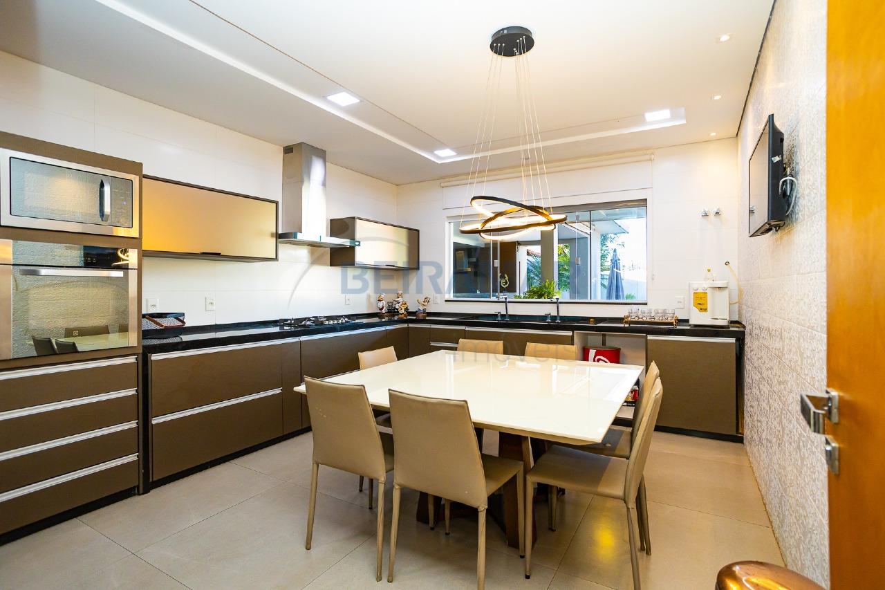 São 450m² inteligentemente distribuídos em dois pavimentos, onde o living integrado à varanda gourmet com jardim iluminado transforma almoços e jantares em família em momentos memoráveis. Para os amantes de boa gastronomia, a cozinha planejada com cristaleira em vidro bronze e fogão embutido é um convite à convivência.